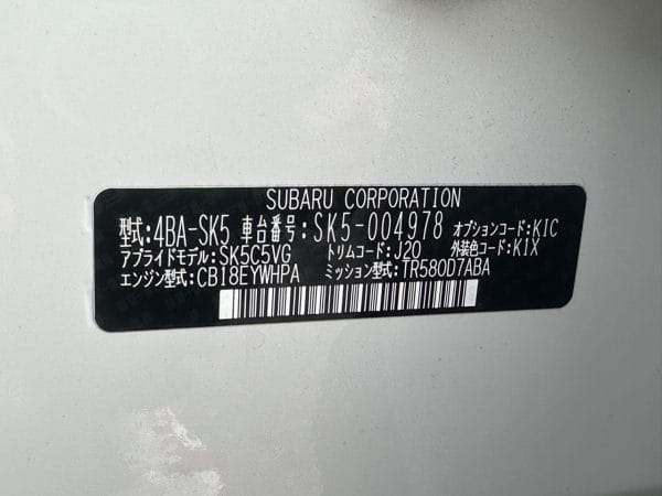 | Registration Year | 2021 | Model Code | 4BA-SK5 |